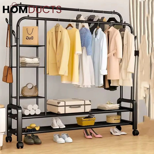 Luxury Rolling Garment Rack with Dual Storage Shelves – Modern Metal Clothes Organizer