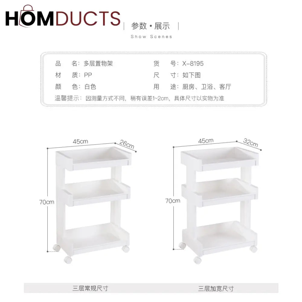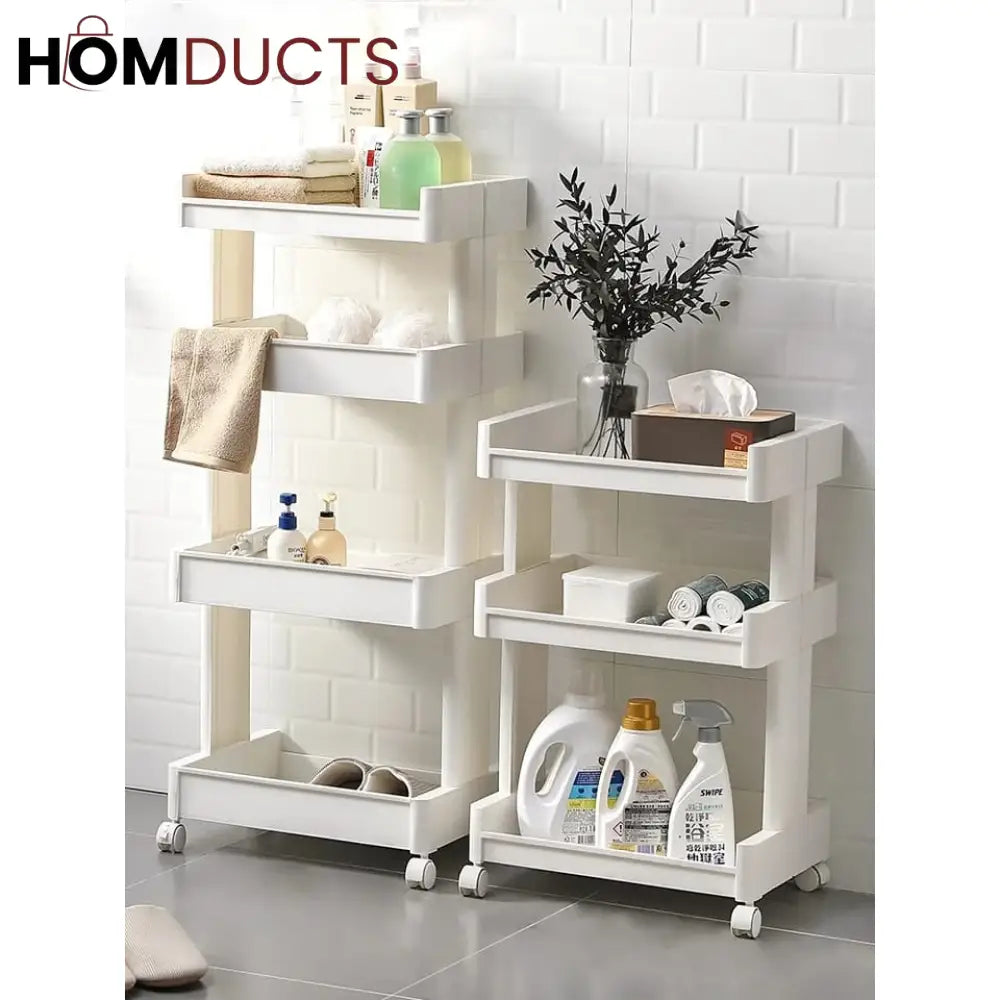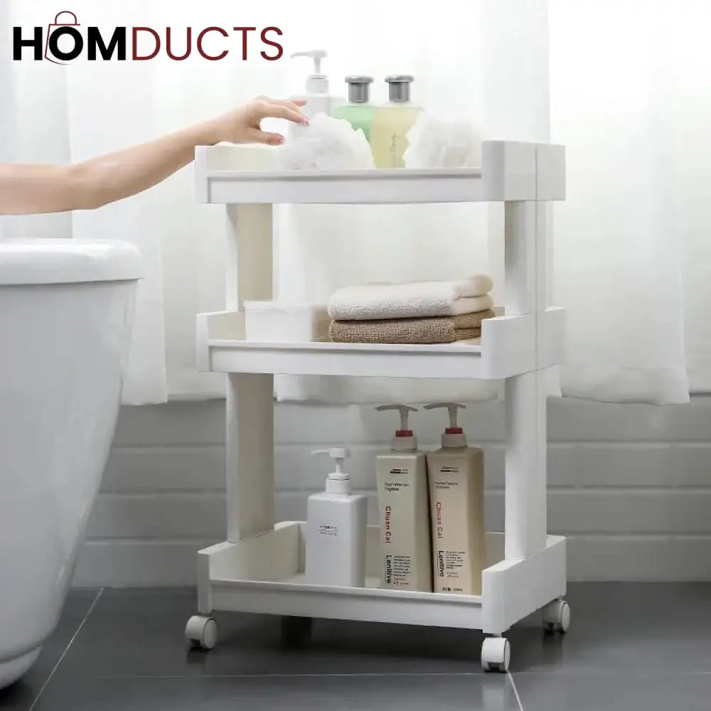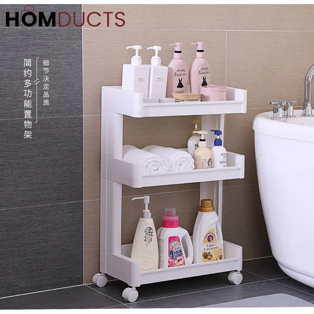 "Maximize your space with our 3-layer movable trolley, perfect for kitchen and bathroom organization!