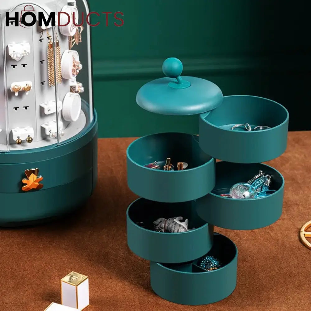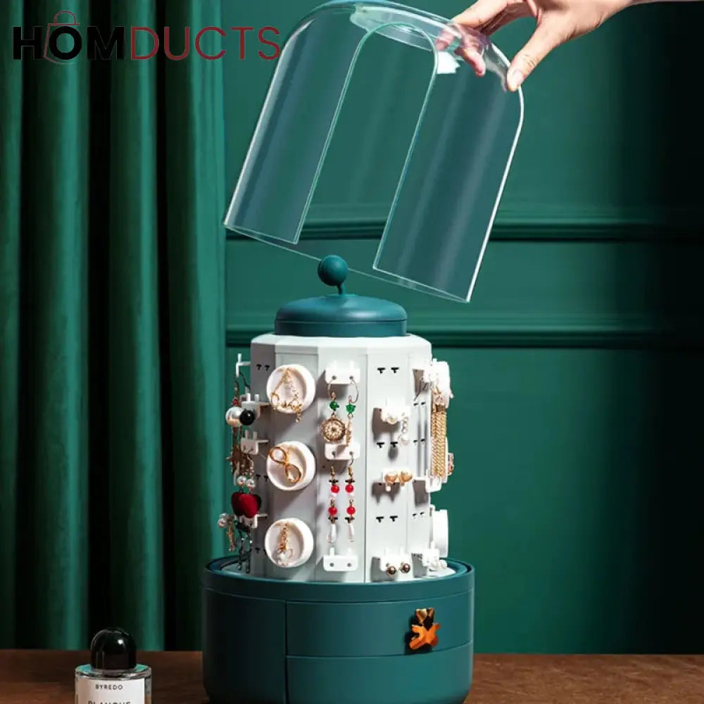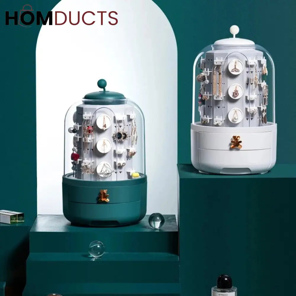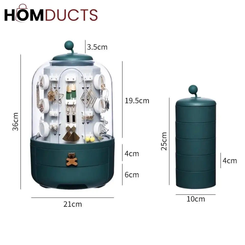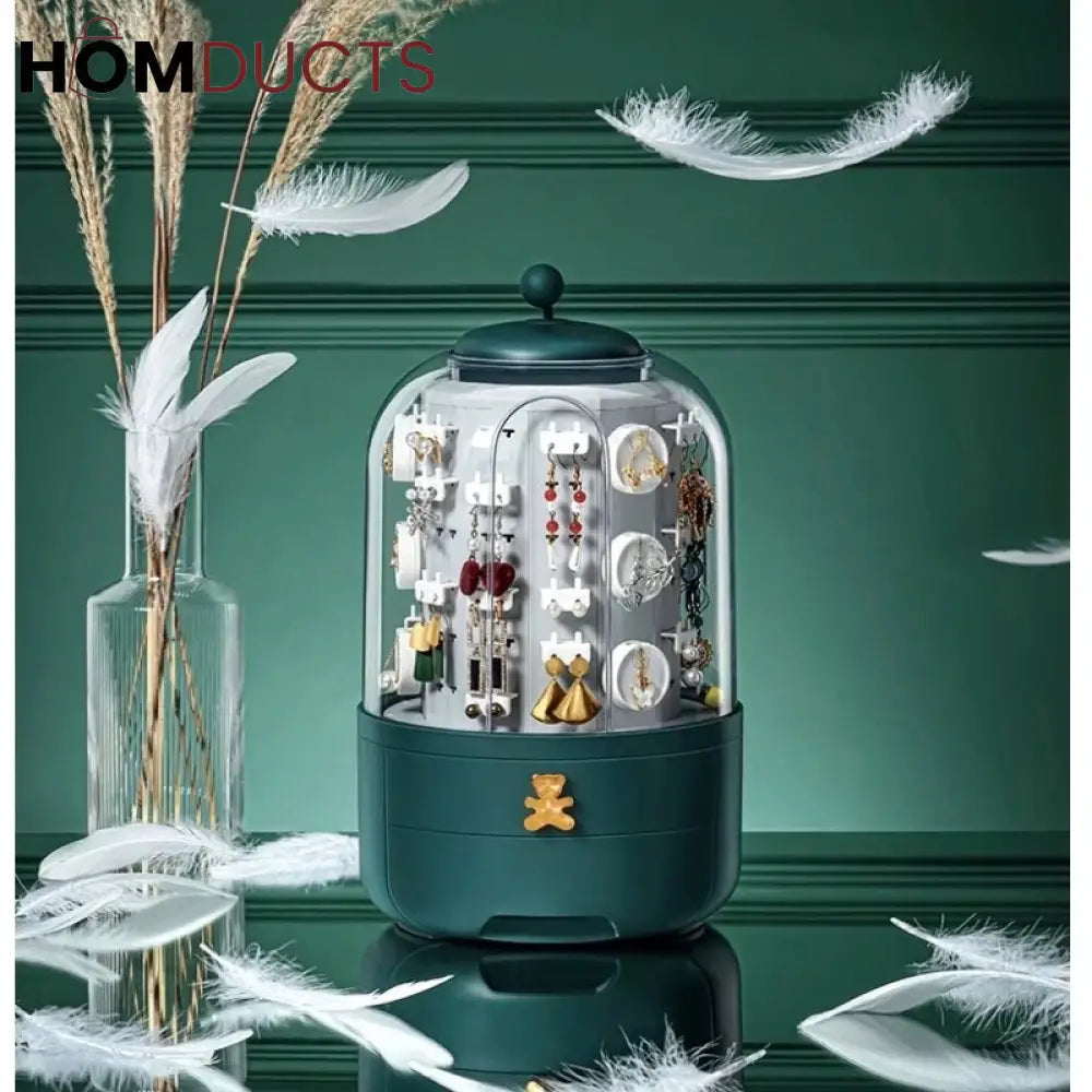 Green 360 Rotating Jewelry Organizer Cosmetic Storage Box Earring Necklace Display Transparent Makeup Desktop Organizer Women