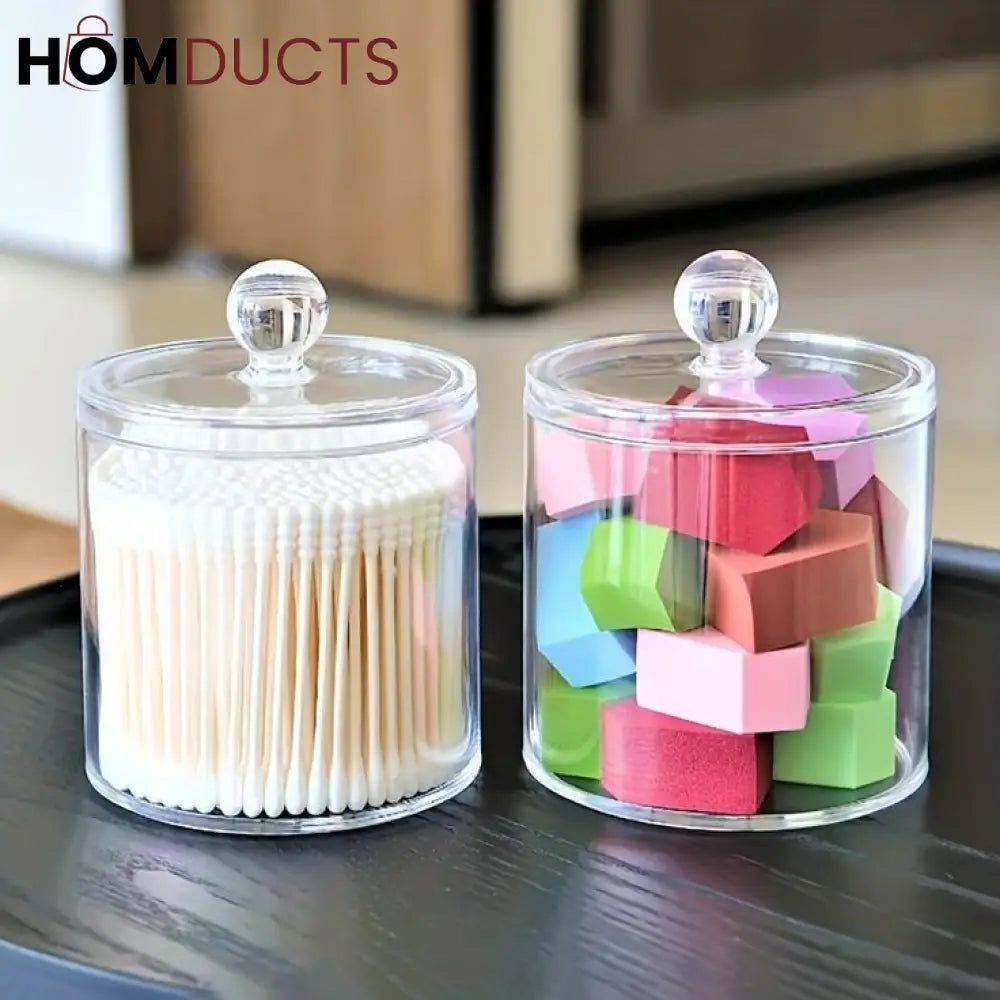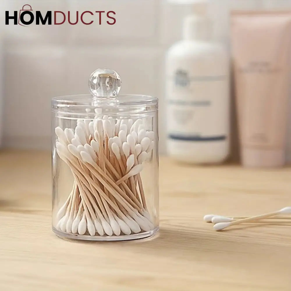 It can hold many items, such as cotton swabs, cotton balls, bath salt, jewelry, lipstick, nail polish, hair accessories. makeub brushes and so on