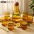 Amber Glass Jug Set with Wooden Ball Lid – 7-Piece Lemonade & Water Serving Set