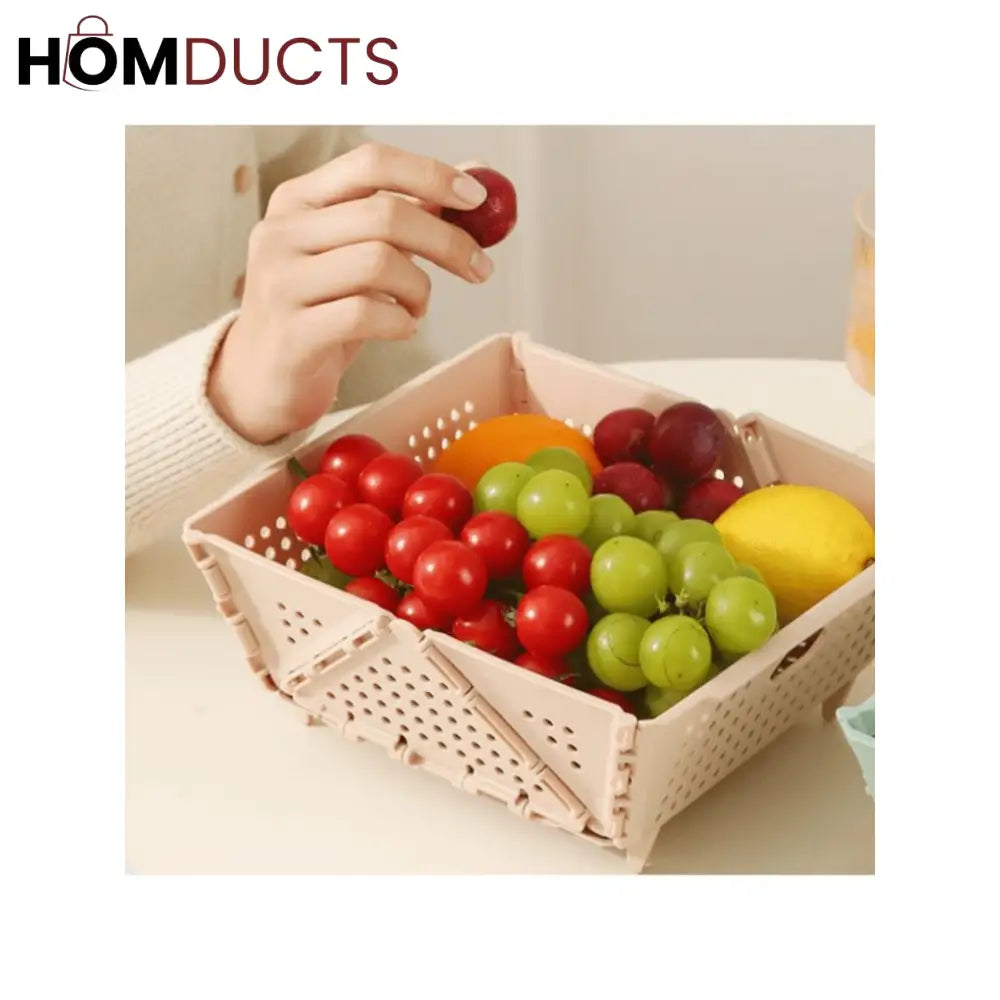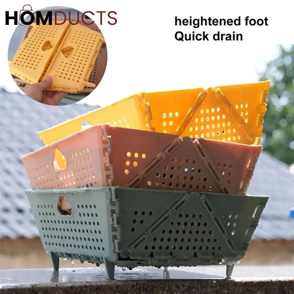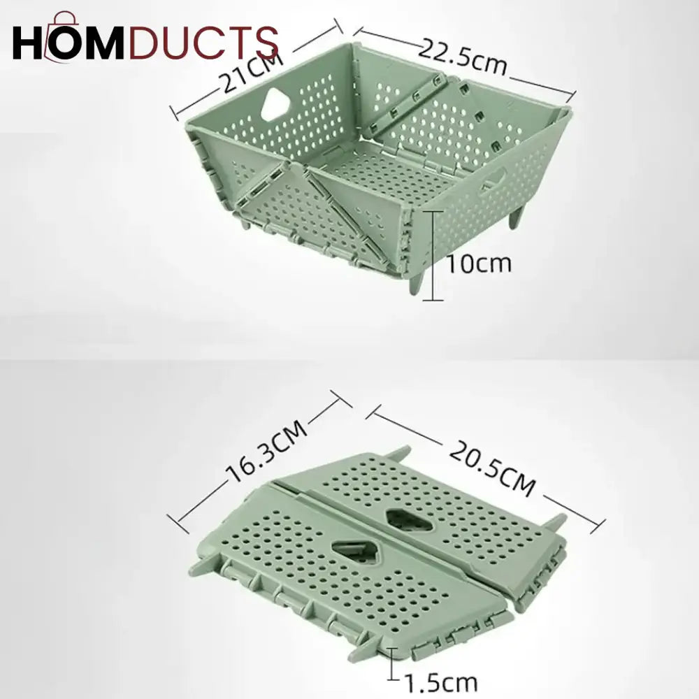 evenly spaced drainage holes on the bottom make filtering and draining easy and fast. Item Name: Storage Basket Material: PP Features: Folding, Heightened Legs, Unique Application: Storage, Draining Size Detail: Unfolded Size: 23cm x 20cm x 10cm/9.06" x 7.87" x 3.94" (Approx.) Folded Size: 21cm x 20.5cm x 1.5cm/8.27" x 8.07" x 0.59" (Approx.)