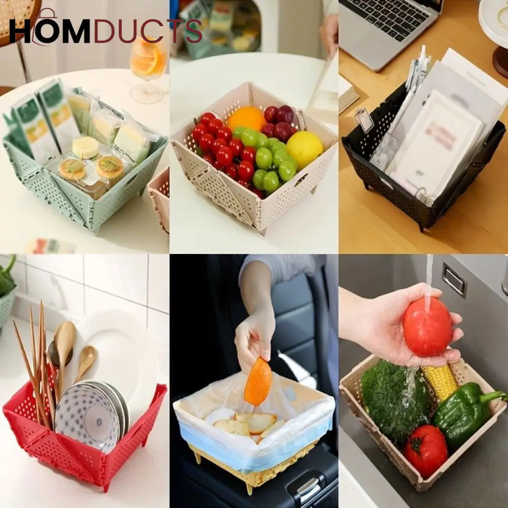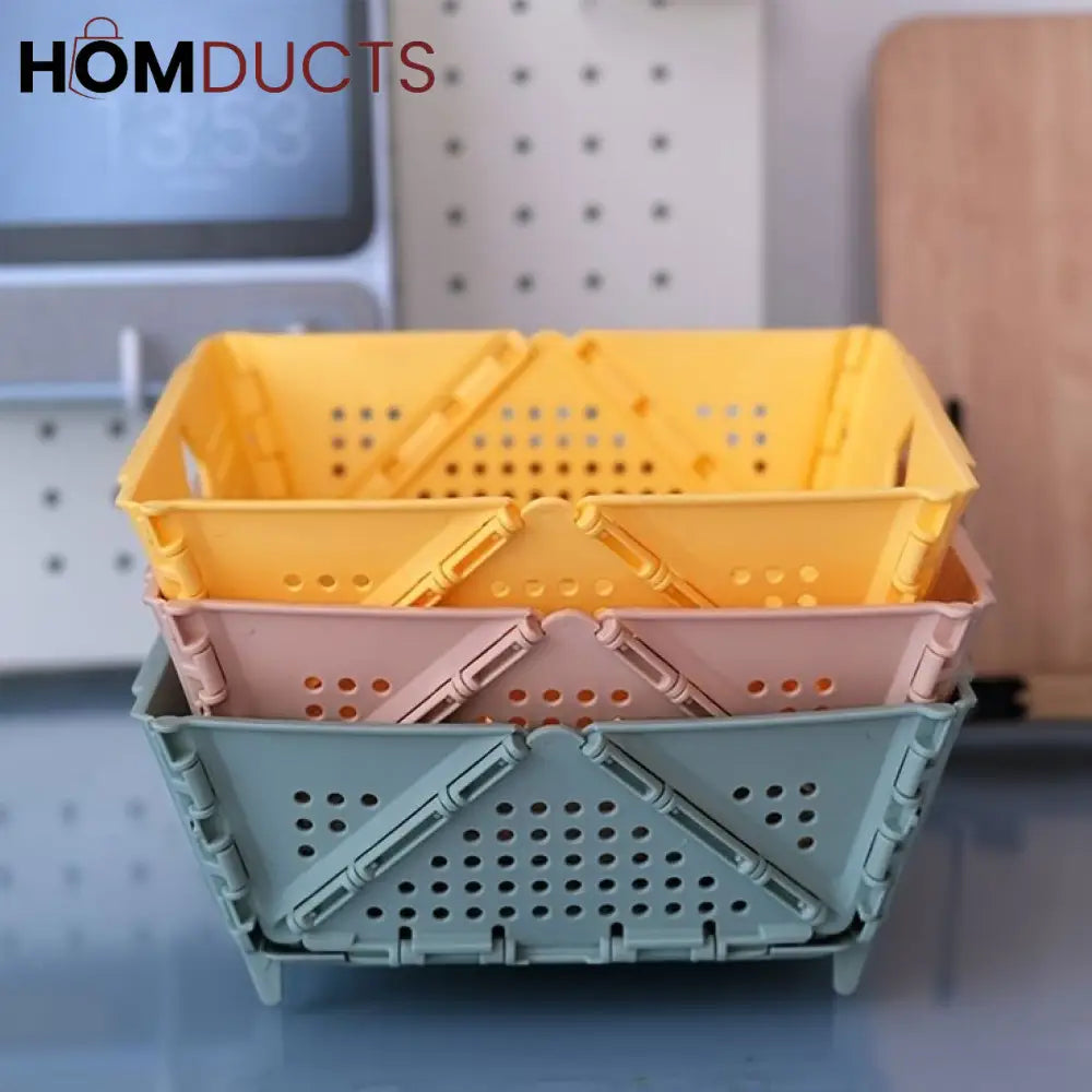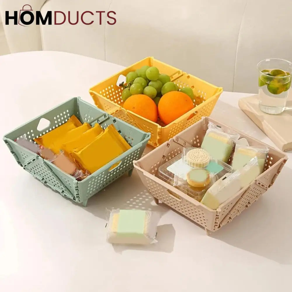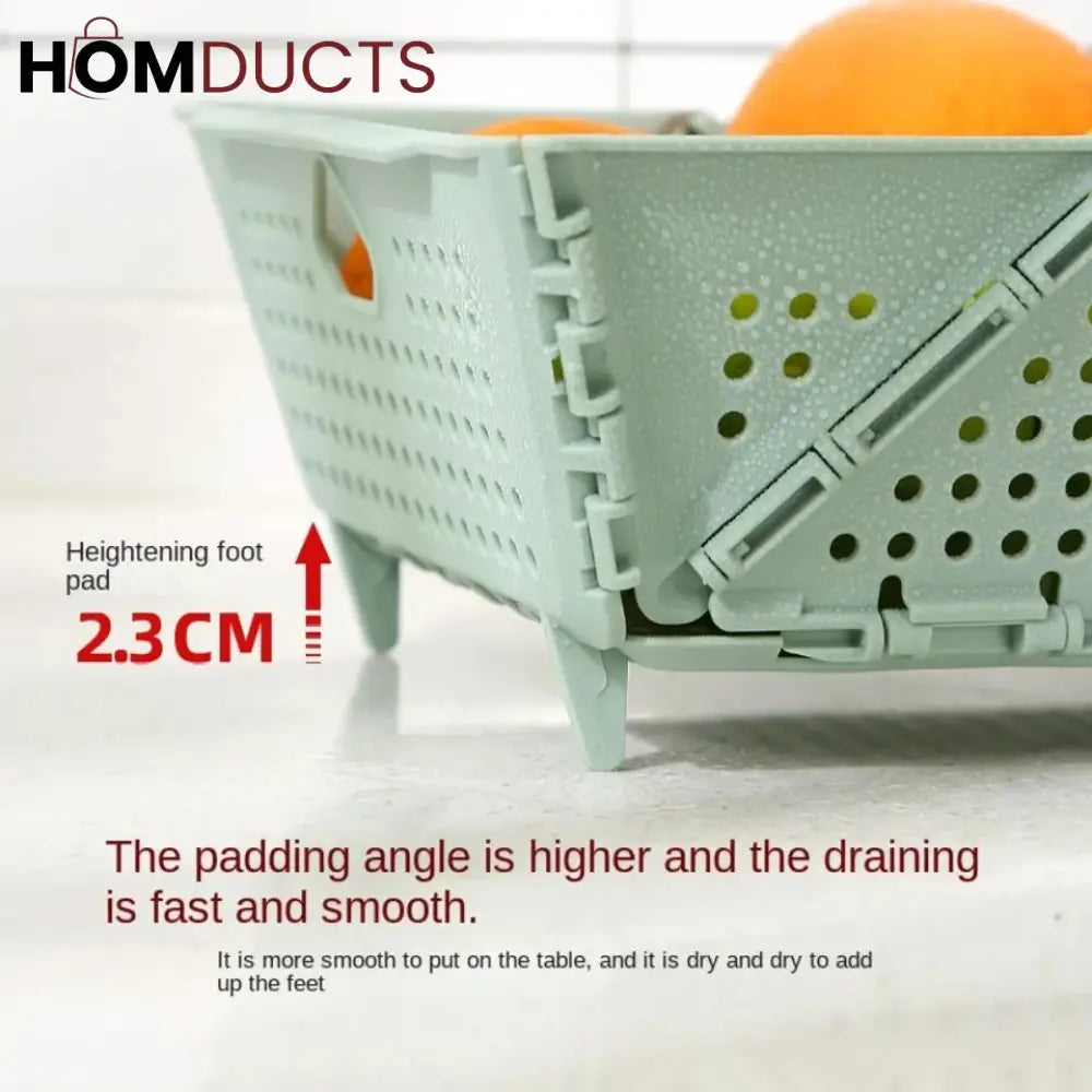 evenly spaced drainage holes on the bottom make filtering and draining easy and fast. Item Name: Storage Basket Material: PP Features: Folding, Heightened Legs, Unique Application: Storage, Draining Size Detail: Unfolded Size: 23cm x 20cm x 10cm/9.06" x 7.87" x 3.94" (Approx.) Folded Size: 21cm x 20.5cm x 1.5cm/8.27" x 8.07" x 0.59" (Approx.)