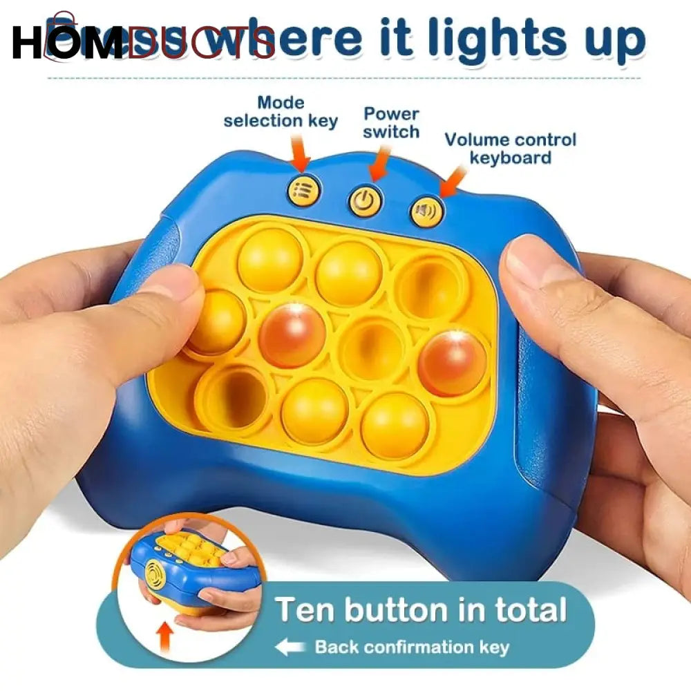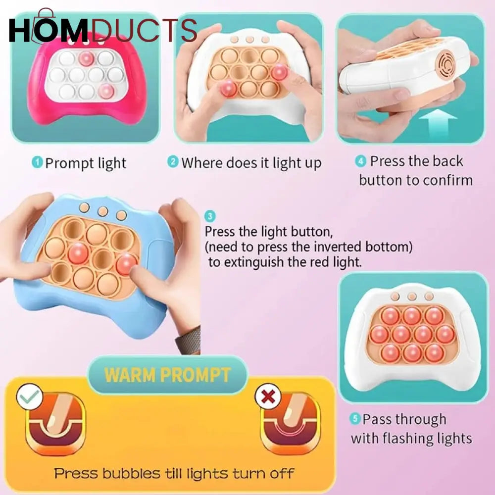 Selected Material: The pop-puzzle game console use qualified abs-plastic & electronic components,soft touch-feeling press bubbles as well as wear-resistant, with durable performance.