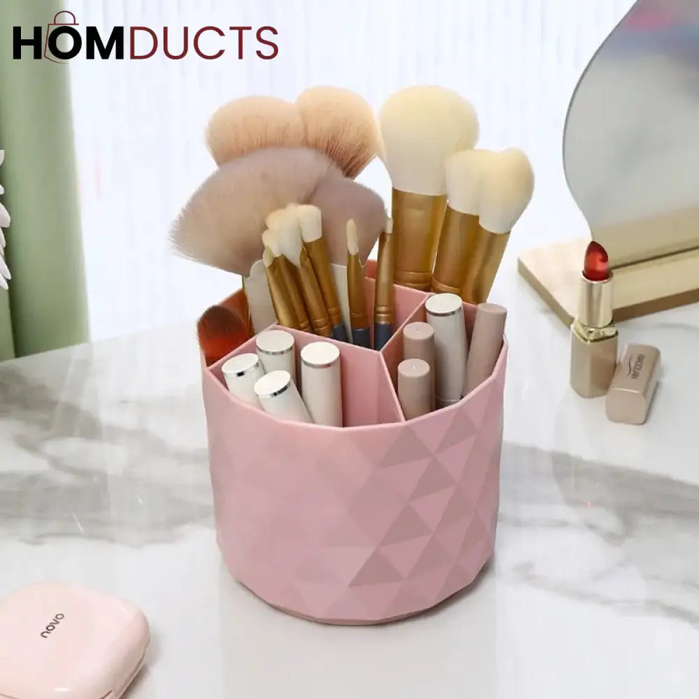 360° Rotating Brush Barrel Makeup Brush Storage Box Portable Desktop Cosmetic Organizer Lipstick Brushes Holder Pen Holder