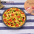 The pizza pan is made from heavy-duty carbon steel for strength and durability.