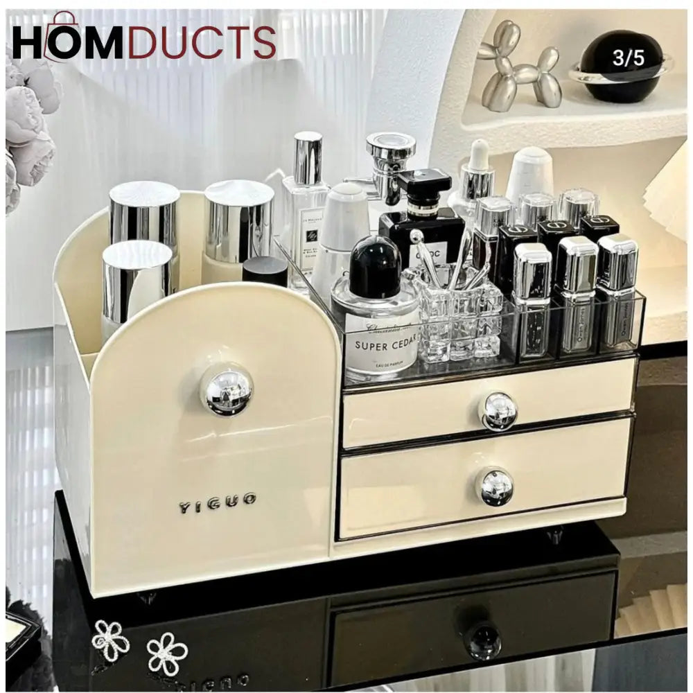 "Get your beauty routine organized with our Cosmetic Organizer with Drawer!